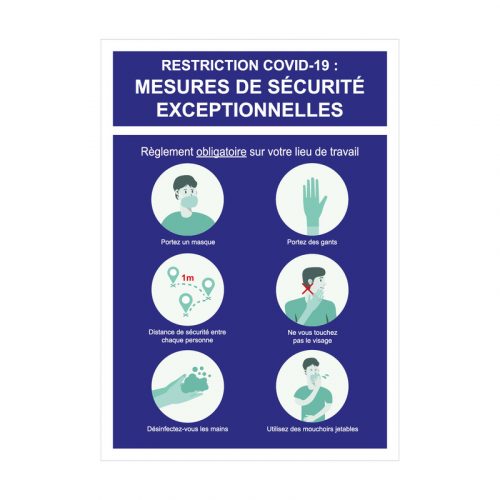 • Message : Merci d’attendre ici, respecter une distance d’un mètre – Covid 19