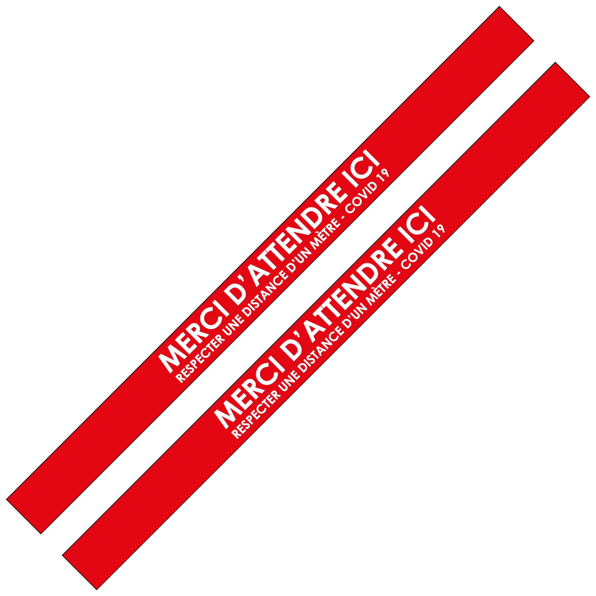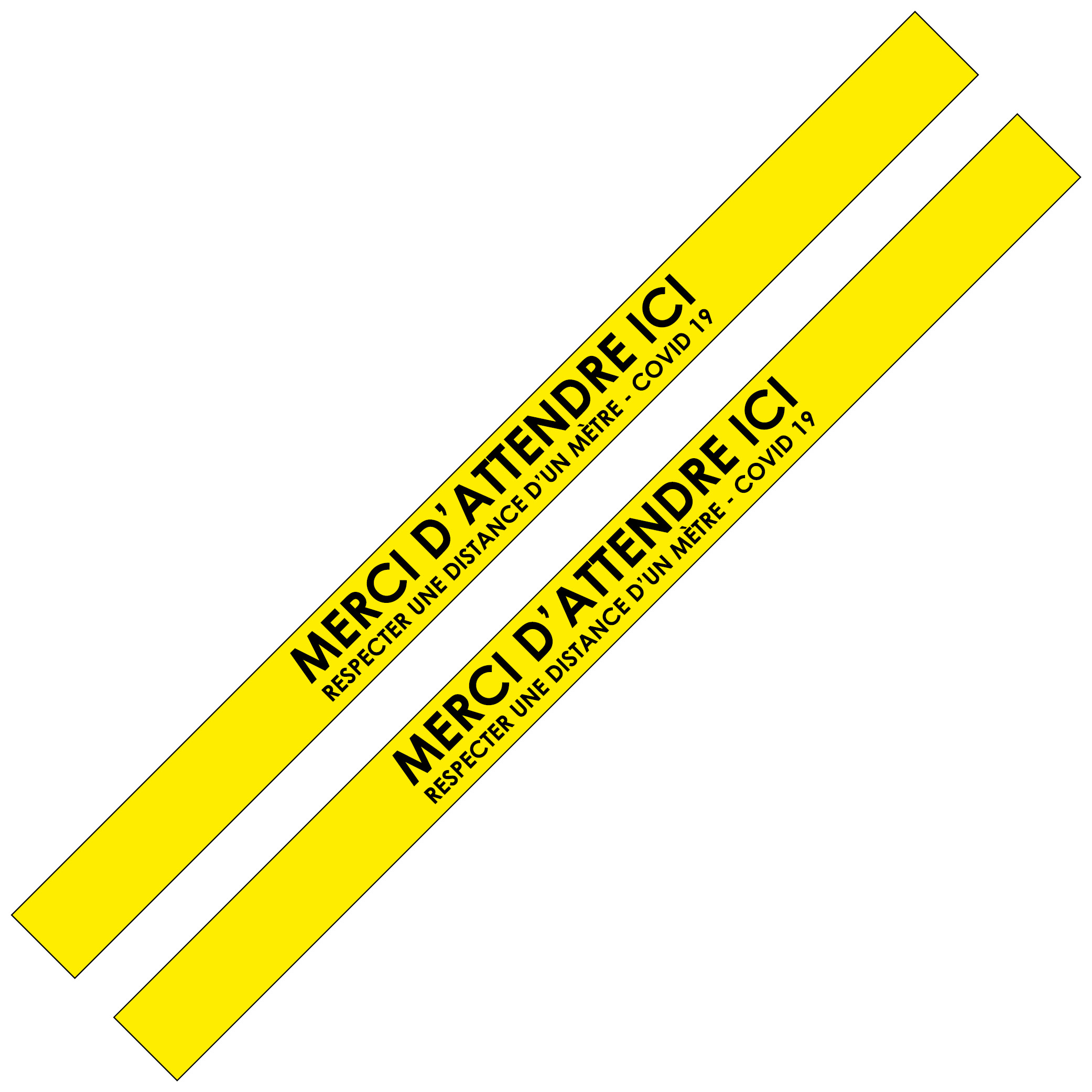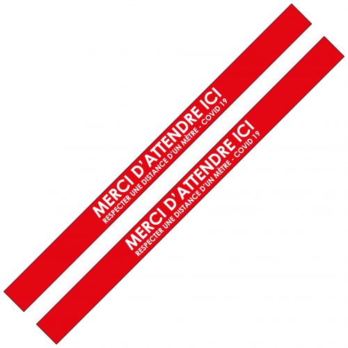 JMJCOM vous propose des adhésifs spécial pour le sol. Ces adhésifs sont anti-dérapent et conçus pour le grand passage. Les bandes de signalétique sol Covid 19 sont disponibles en 2 couleurs. Les bandes de signalétique COVID 19 indique le message suivant : Covid 19 – Merci d’attendre ici, respecter une distance d’un mètre – Covid 19